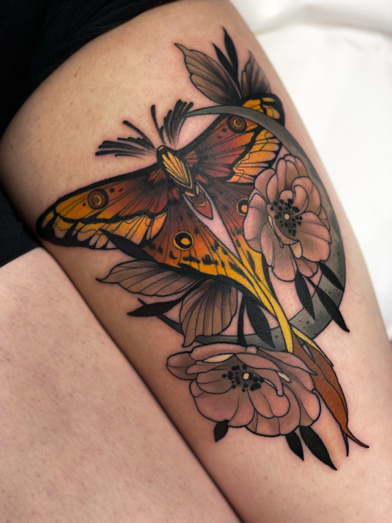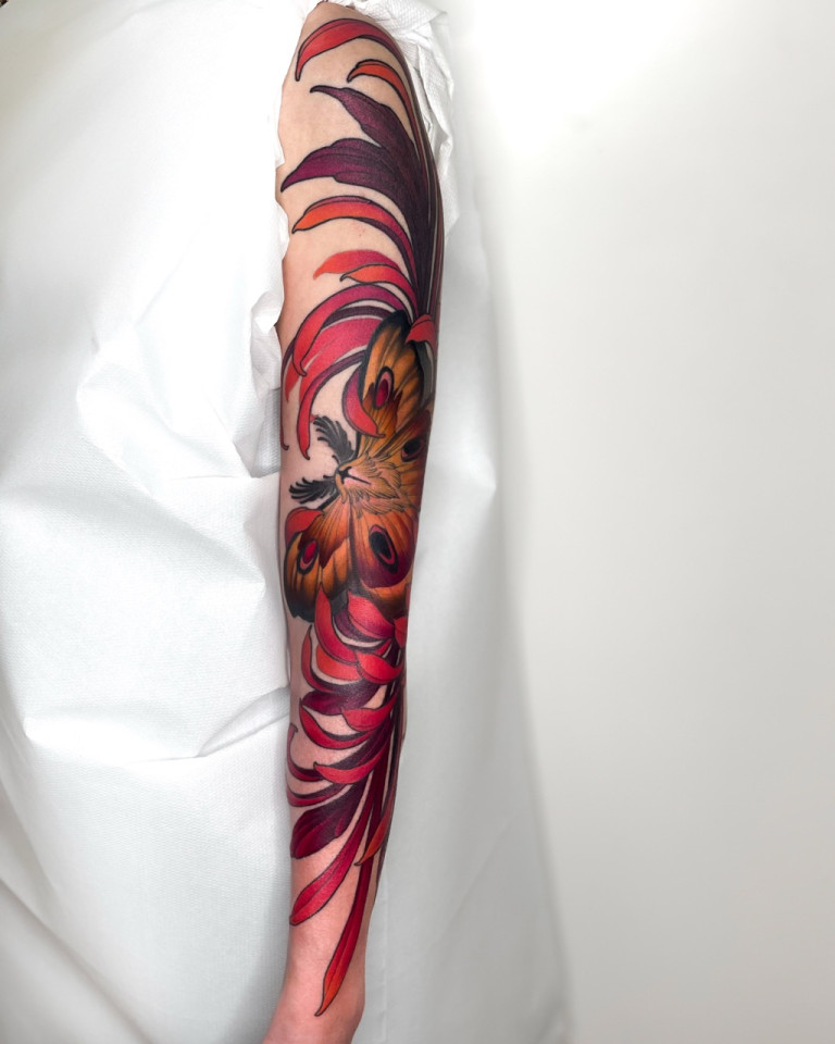 Karmely, born and raised in Tallinn, Estonia, has been tattooing since the age of 18. Known for her flowy neo-traditional style, her work bursts with color, nature-inspired details and striking flow. Outside the studio, she channels her creativity into photography—capturing drifting events, show cars and even building her own. Restless at heart, she finds inspiration in traveling and discovering the world—always seeking new places, cultures and experiences to fuel both her art and her soul.